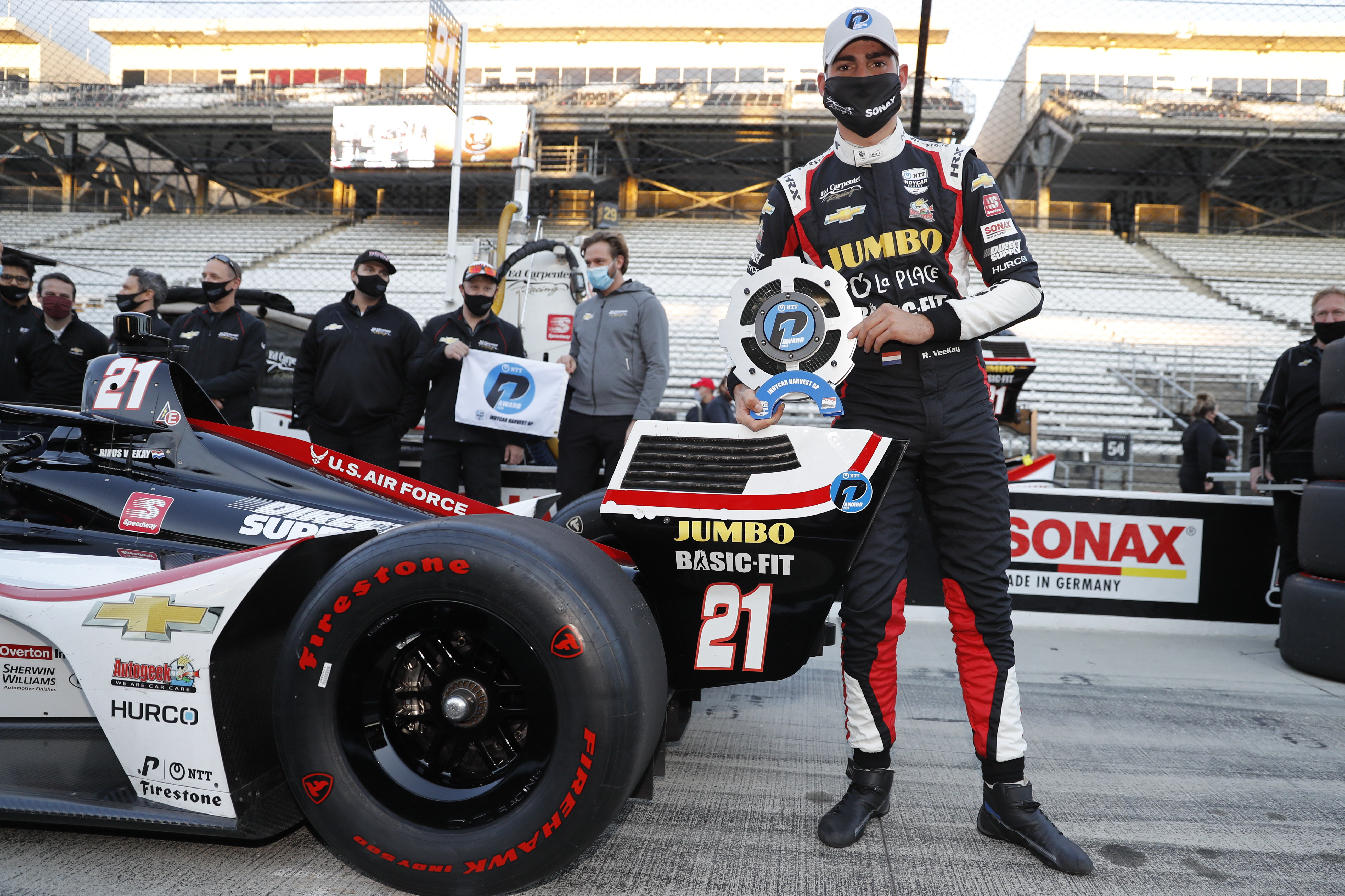 At the first race of the Harvest Grand Prix, VeeKay earned his first career pole position and finished third, his first career podium, at the Indianapolis Motor Speedway Road Course.