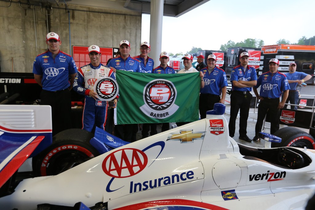 Their newest driver Simon Pagenaud lined up third. Points leader Juan Pablo Montoya would start a distant 15th on the grid, behind his three teammates.