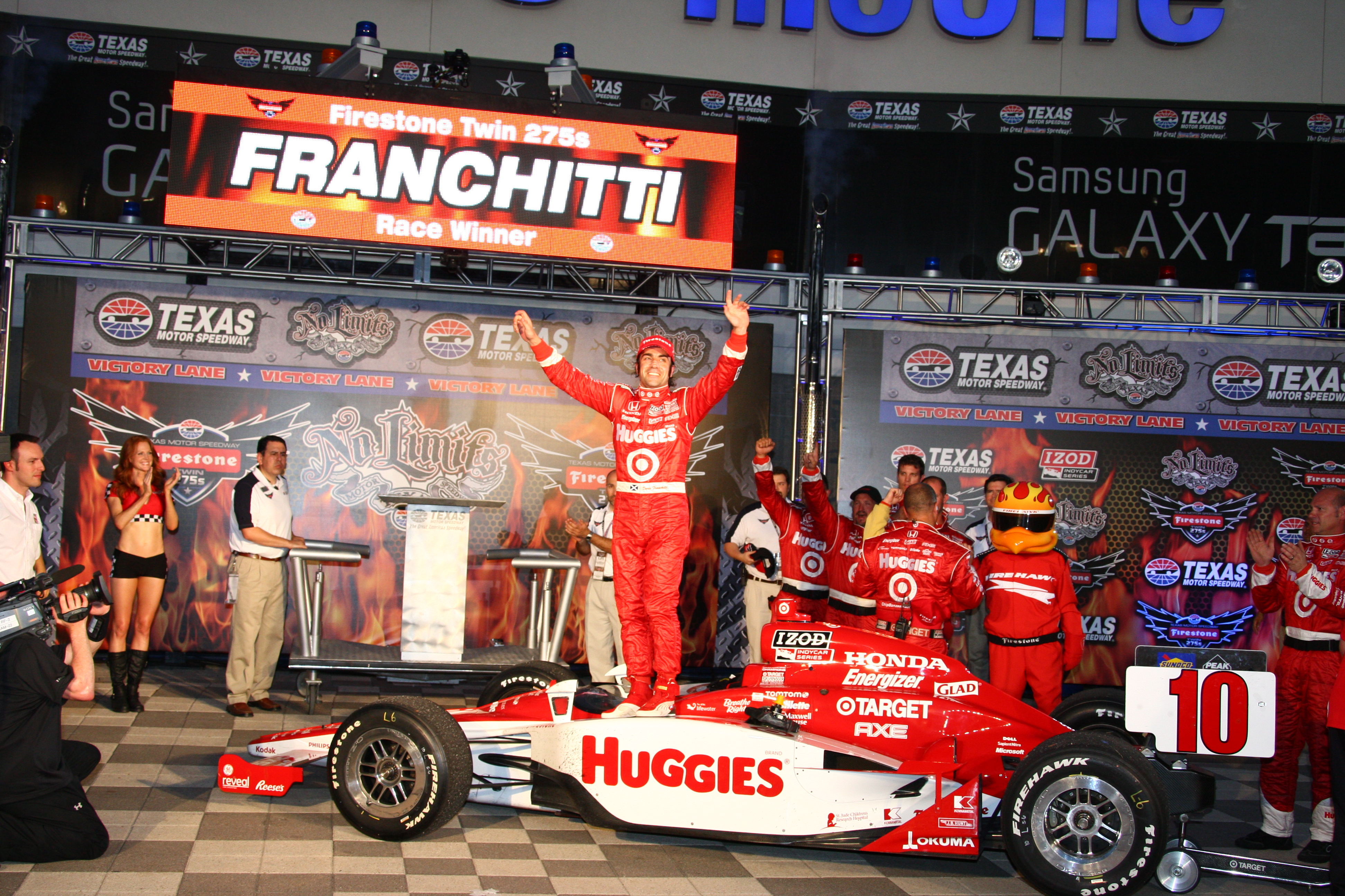 As the race went on caution-free, fuel mileage became the name of the game. During the waning laps, 2008 Texas winner Scott Dixon and 2010 winner Ryan Briscoe also took their turn at the front.