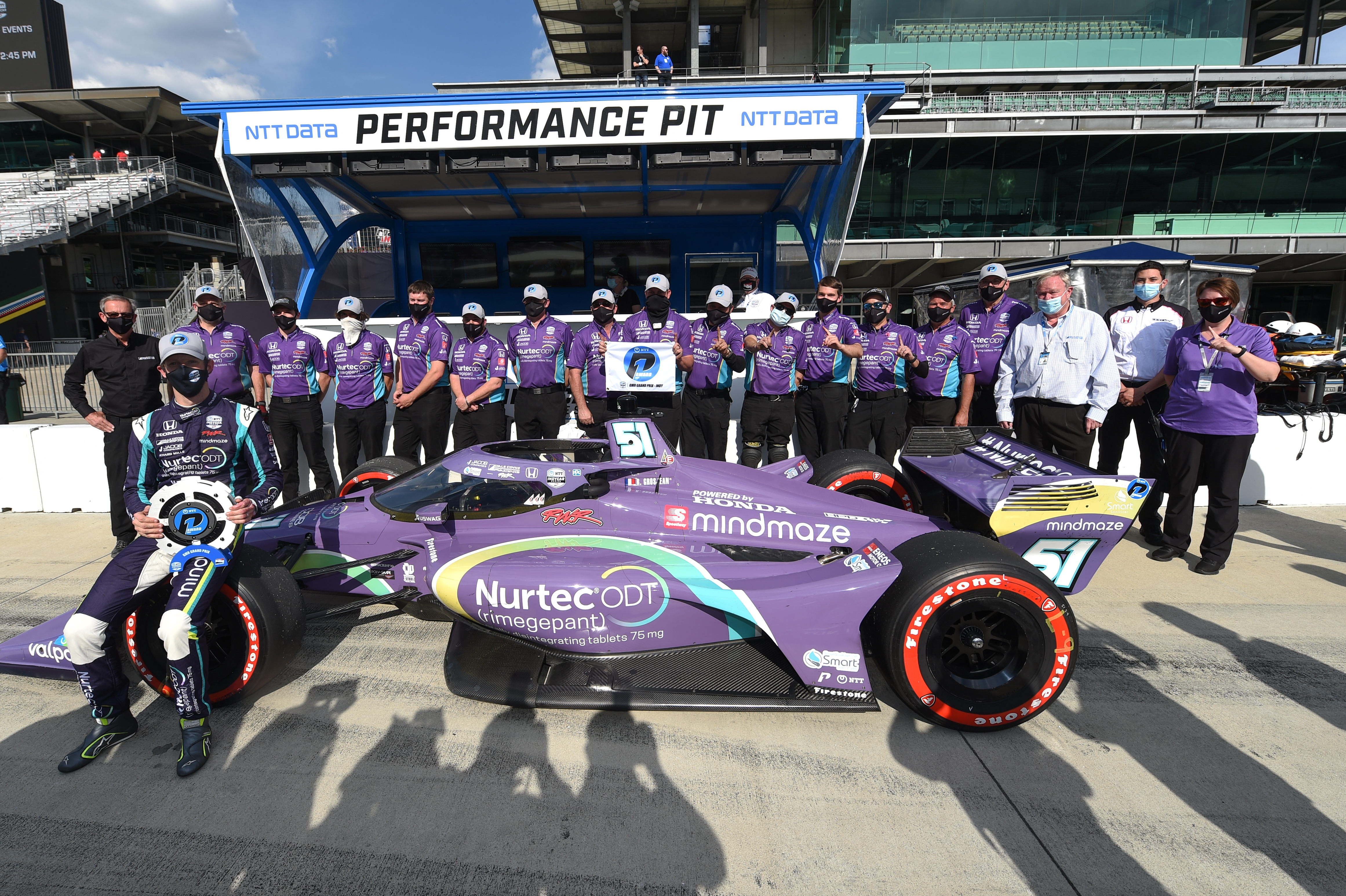 During his first day on track at the famed speedway, Dale Coyne Racing with RWR’s Romain Grosjean turned in a best lap of 1m09.4396 (126.447 mph) seconds to win his first IndyCar pole.