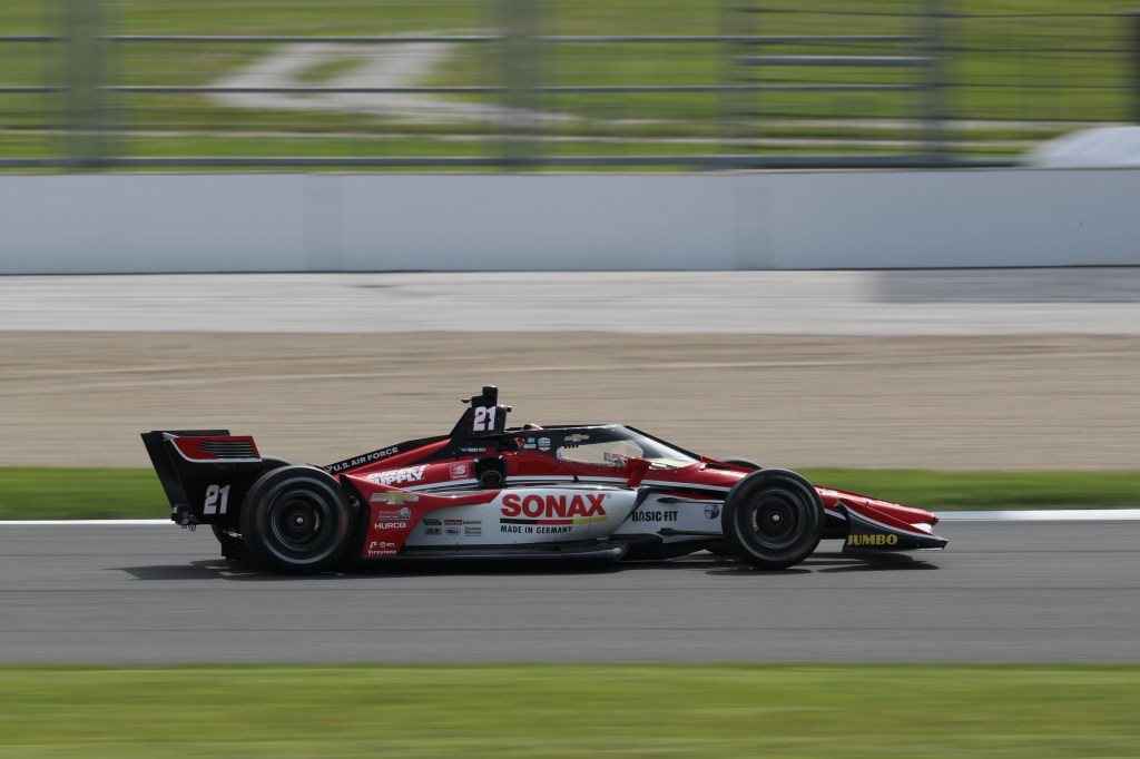 In Saturday’s morning warmup, the No. 21 Ed Carpenter Racing team showed their pace for the 85-lap event (1m10.5598-124.439 mph), .0326 of a second ahead of Alex Palou.