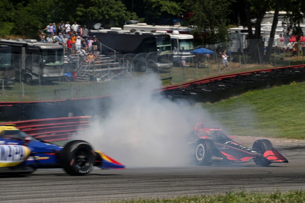 On the Lap 4 restart issues continued, Team Penske’s Will Power spun after contact in Turn 5 with Dixon. With nowhere to, Dale Coyne Racing with Vasser-Sullivan’s Ed Jones was collected as well. Both drivers would be done for the day.