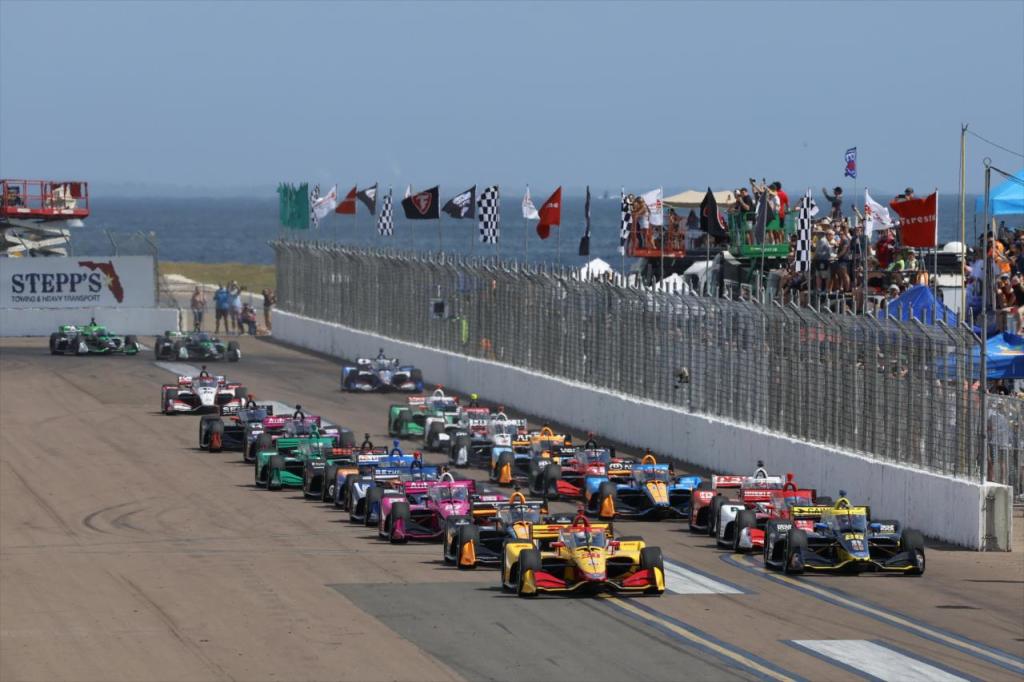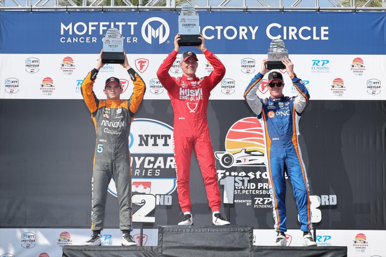 Scott Dixon, who has yet to win in 19 starts at St. Petersburg, finished third in a CGR podium bookend. It is Ganassi’s second win in this race and first since 2011 with Dario Franchitti.