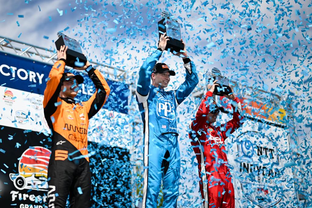 Making it two runner-up finishes in a row and three in five years at St. Pete, Arrow McLaren’s Pato O’ Ward was second, 7.9121 seconds back. Newgarden’s teammates Scott McLaughlin and Will Power made it three Penske cars in the Top Four and a 1-2-3-4 sweep for Chevrolet.