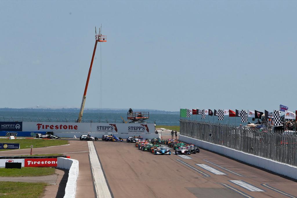 Before the green flag, Ed Carpenter Racing rookie Christian Rasmussen spent time on pit lane to resolve a clutch issue but was able tor join at the start.