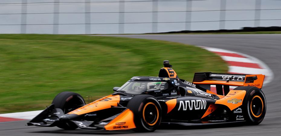 Arrow McLaren’s Pato O’Ward notched the quickest lap during Saturday morning’s practice session for The Honda Indy 200 at the Mid-Ohio Sports Car Course. O’Ward turned a best lap of 1m05.9862 (123.189 mph) on the 2.258-mile, 13-turn road course in Lexington, Ohio.