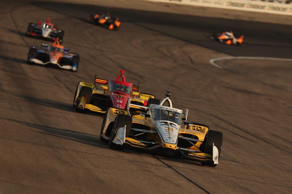 During the ensuing pit stops, McLaughlin would narrowly gain the lead on pit road from Herta. It would prove to be the only lead change on the evening. On the ensuing restart, Herta fought wheel-to-wheel but was unable to pass McLaughlin.