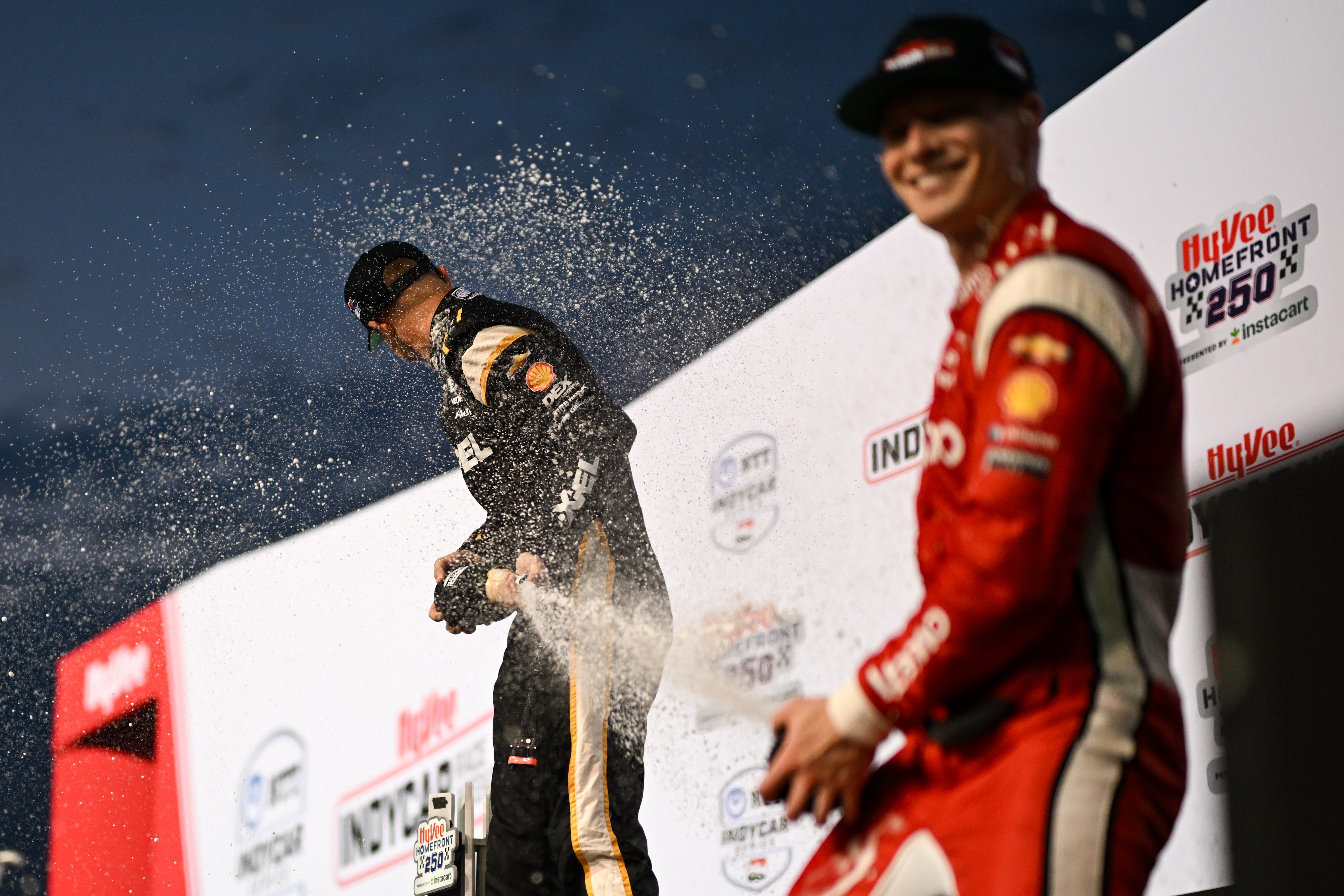The Kiwi, who led yesterday’s practice, started second and his “Thirsty 3’s” pit crew were able to get him to the lead during the opening pit stop sequence. He would hold off Arrow McLaren’s Pato O’Ward by .4814 of a second at the .894-mile oval in Newton, Iowa.