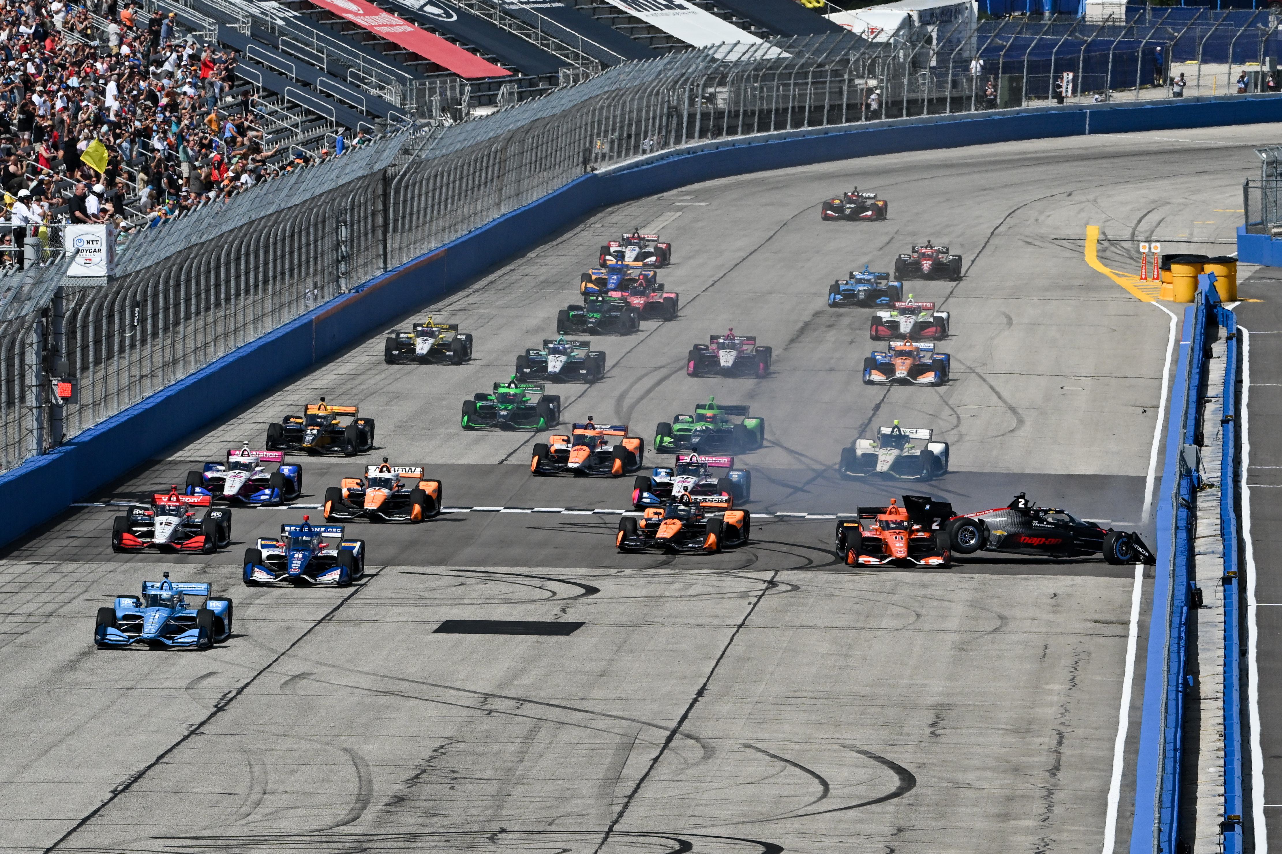 Up front saw more issues as pole sitter Josef Newgarden was hit from behind by Linus Lundqvist and Marcus Armstrong of Chip Ganassi Racing.