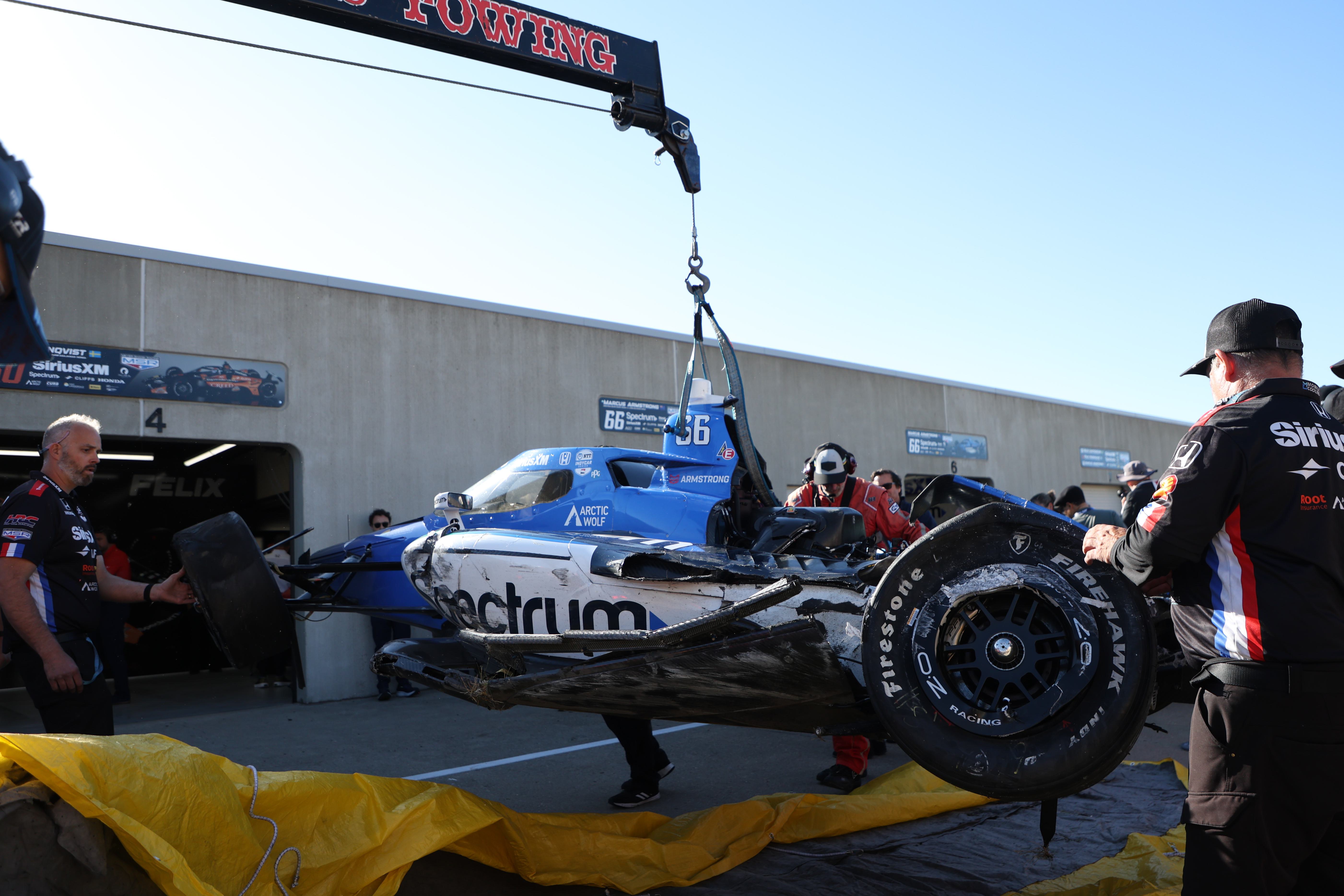 Treacherous conditions bit another driver in qualifying after Meyer Shank Racing’s Marcus Armstrong crashed in practice. Andretti Global’s Colton Herta spun win the south chute before getting airborne and sliding to a stop in Turn 2. He climbed from his car and was soon seen, cleared and released from the medical center.
