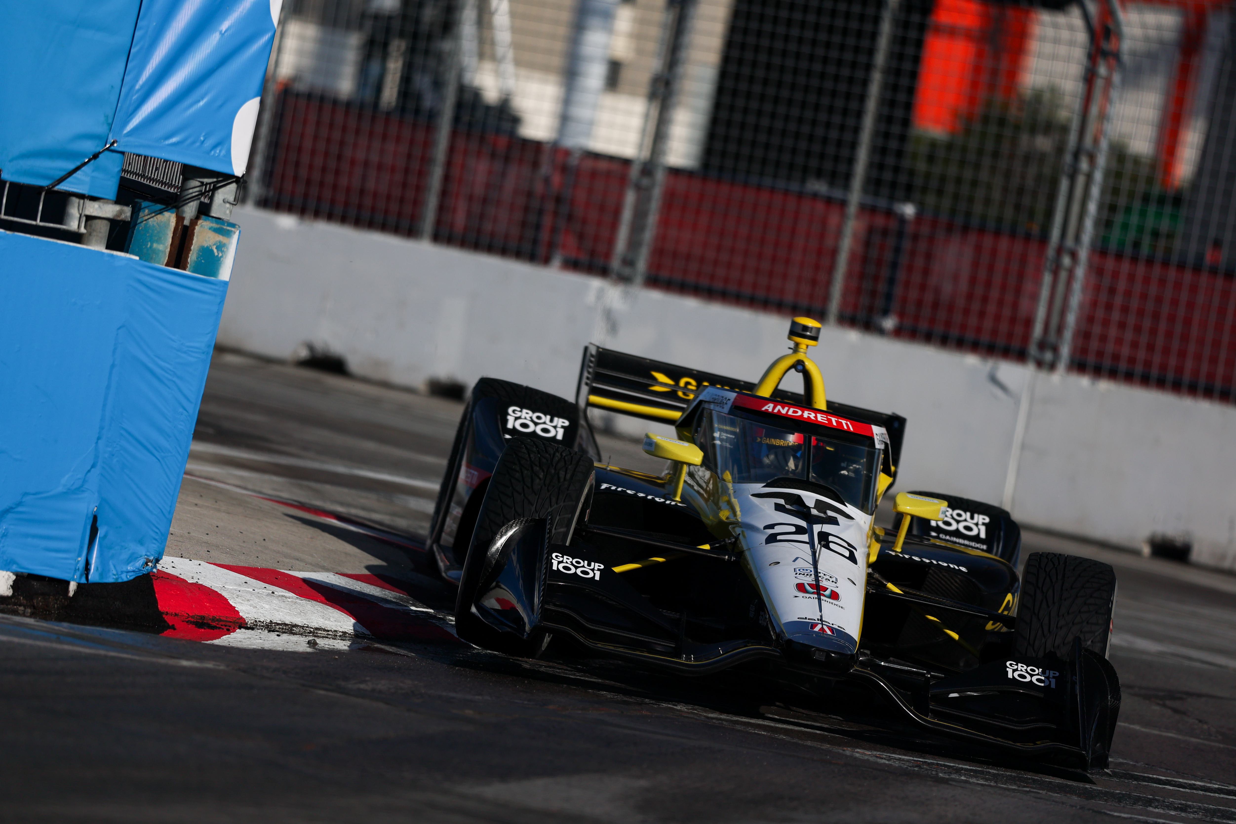 After starting 13th, Chip Ganassi Racing’s Kyffin Simpson improved a race-high ten spots for his first career podium in third. Pole sitter Colton Herta led a 4-5-6 finish among his Andretti Global team.