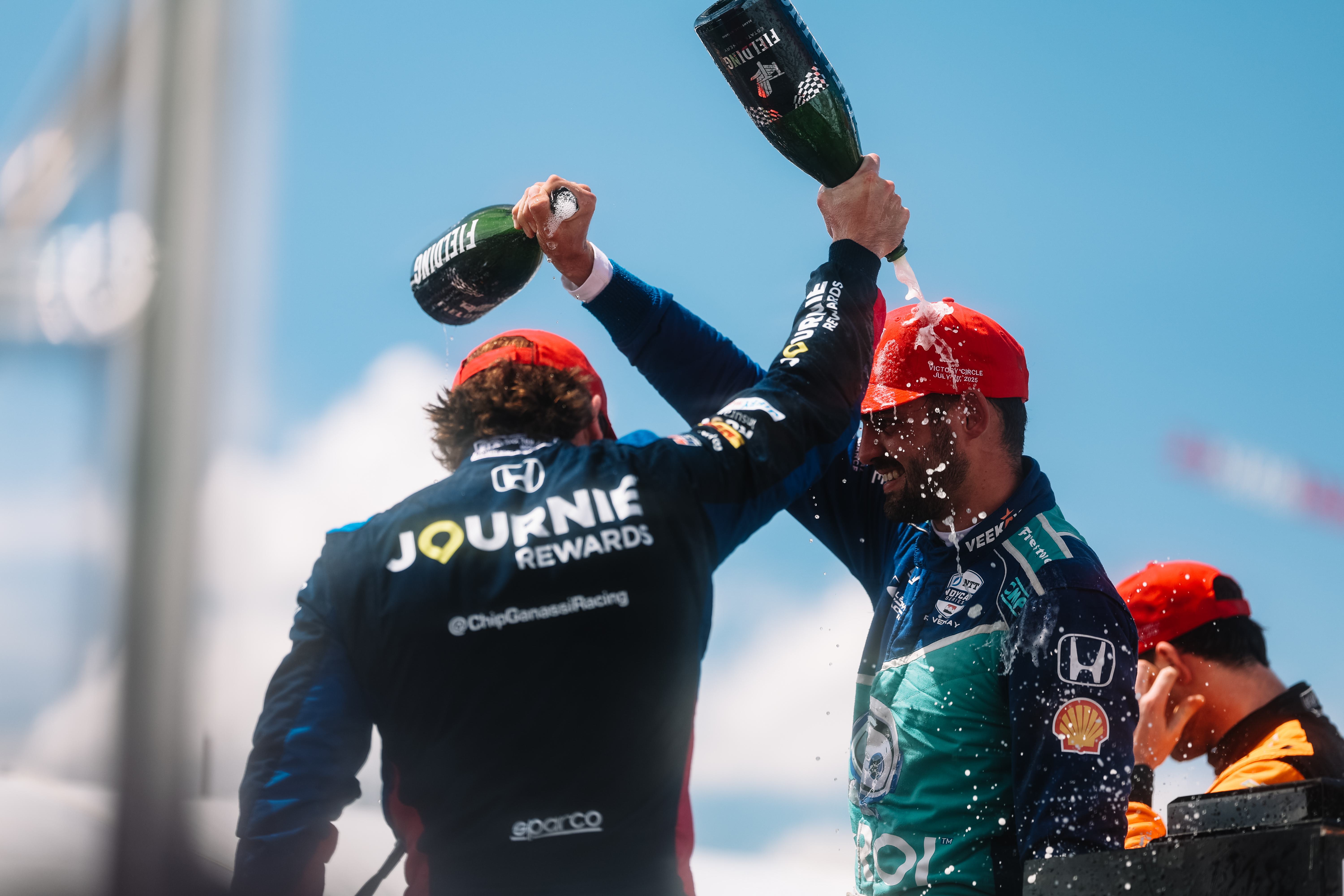 Finishing second to O’Ward, Rinus VeeKay of Dale Coyne Racing earns his first podium since Barber in 2022 and DCR’s first podium since Gateway (WWTR) in 2023 (David Malukas) and first on a street circuit since their 2018 victory in St. Petersburg with Sebastien Bourdais.