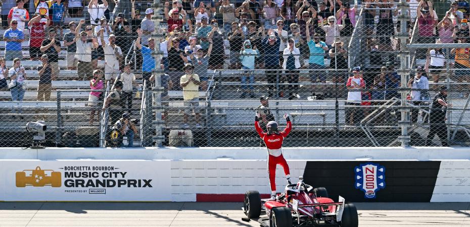 Team Penske earns their 345th INDYCAR victory, second of 2025 and first at Nashville since 2003 (Gil de Ferran).